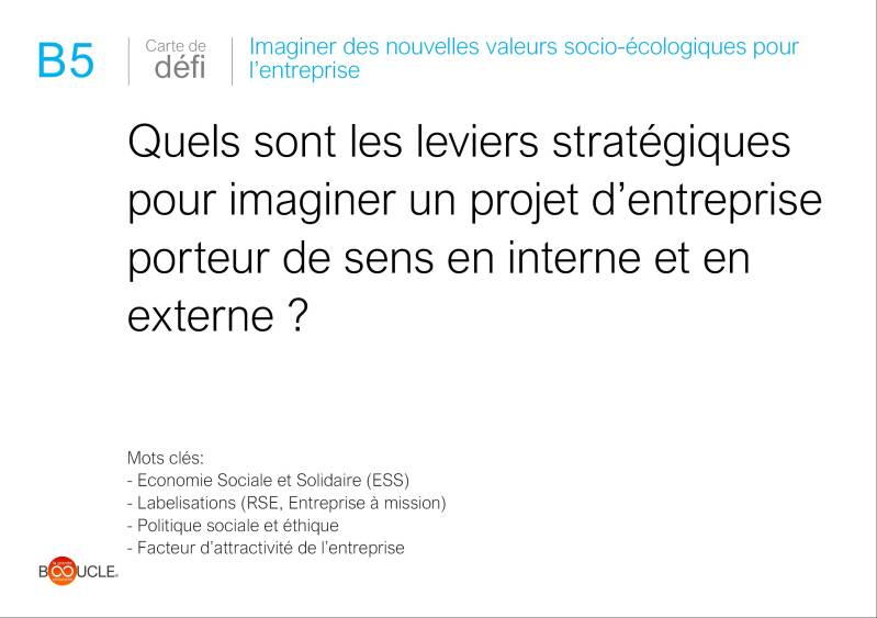 Les cartes de défi sont des thèmes de travail. On parle de défi car elles ouvrent le sujet sous la forme de questions  'comment-peut-on? (CPO) ou 'et si on imaginait ?' et permettent donc d'ouvrir au maximum le champs de questionnement ou d'investigation. Quelque soit votre thème de travail, il est important de bien le formuler, c'est-à-dire, trouver un équilibre entre un sujet trop serré qui laisse peut de place à l'imagination et un thème trop générique qui nécessitera beaucoup de travail en aval. Dans la formulation de votre défi, il  est donc important de le poser sous forme de question. Vous trouverez ci-dessous des exemples illustrant des thèmes autour de l'action publique, de l'entreprise et de la démarche du design.